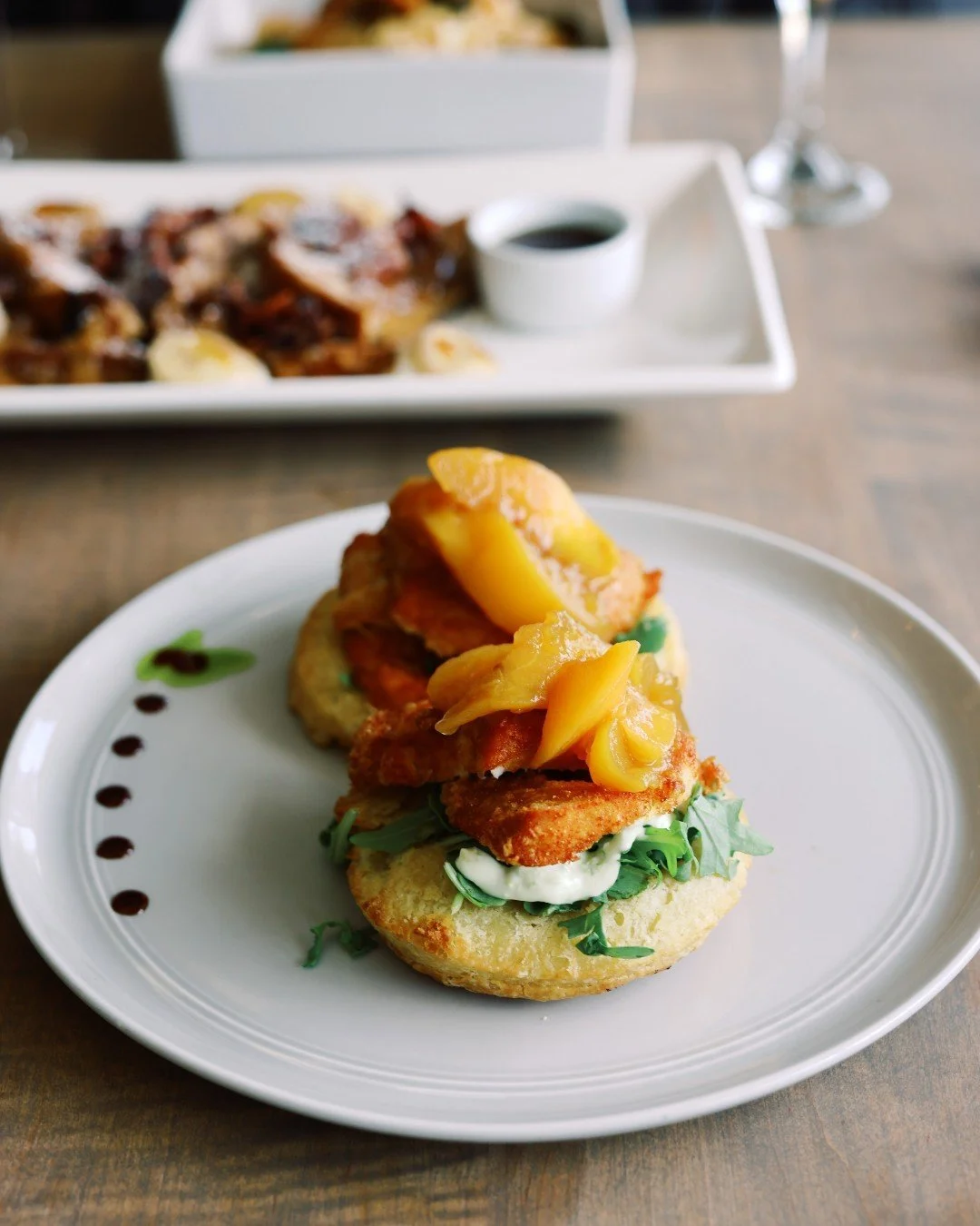 Dame’s takes the fried chicken and waffle formula and spins it into a choose-your-own ritual: waffles from gingerbread to sweet potato, flavored shmears, drizzles, and your pick of chicken. The Red Crested Rosecomb—fried legs with a classic waffle and strawberry shmear—shows why this place earned its following. It’s comfort food with just enough invention to keep it interesting.