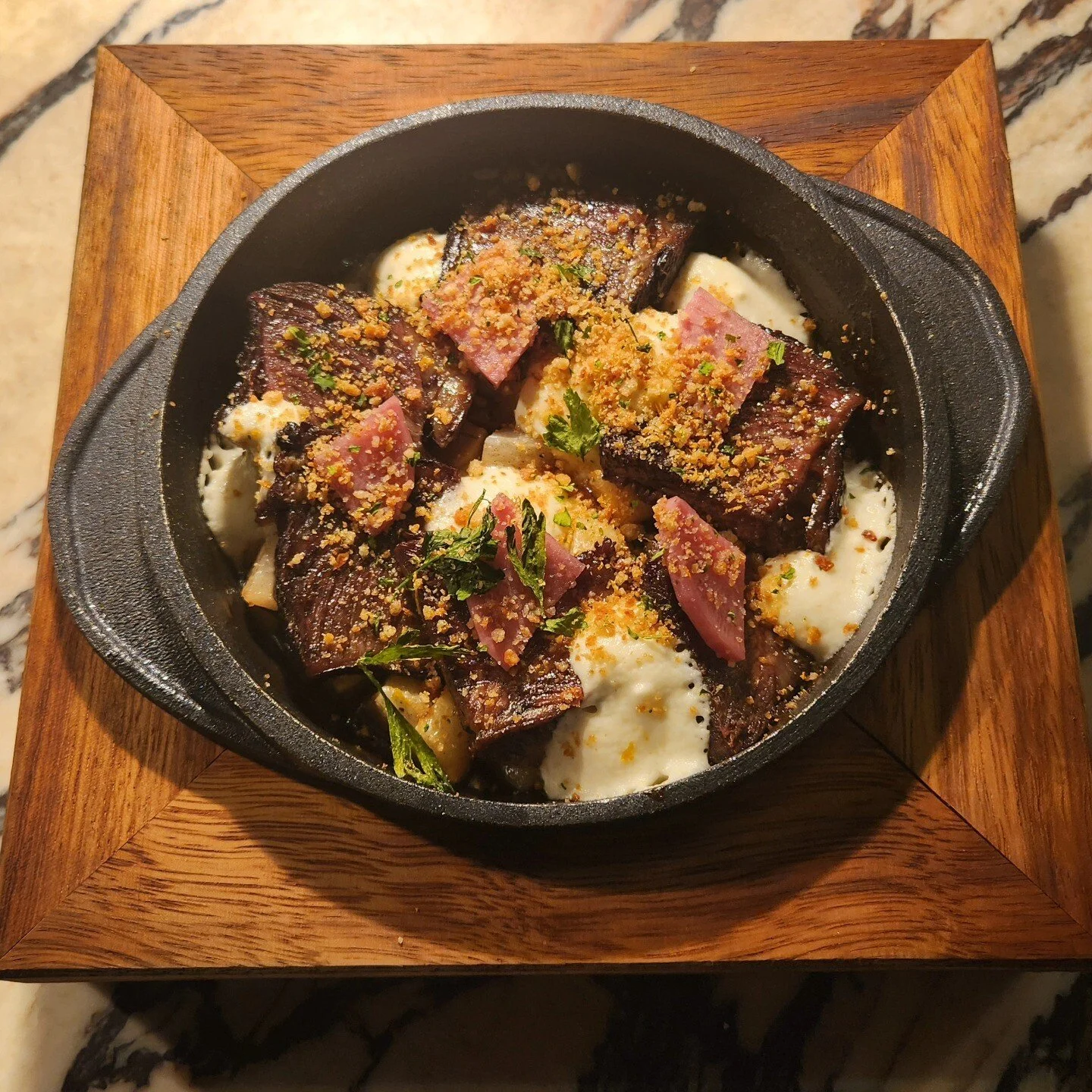 Hemlock crashed downtown Boise’s scene this spring as a proper steakhouse. The house restaurant of the Inn at 500, it’s moody and full of lodge‑leaning tables and a bar that hums. The kitchen leans into serious cuts and starters, from an eight-ounce Riverbend Ranch prime filet to a show‑stopping “Brontosaurus Bone” 10-inch sous‑vide beef rib, alongside a big‑ol’ shrimp cocktail and duck-fat potato steak tartare. It’s that rare kind of spot where, if you’re like me, you stroll in after work, belly up for happy hour, and unexpectedly linger past dinner for more meat, cocktails, and conversation—all without needing a reason beyond the food.