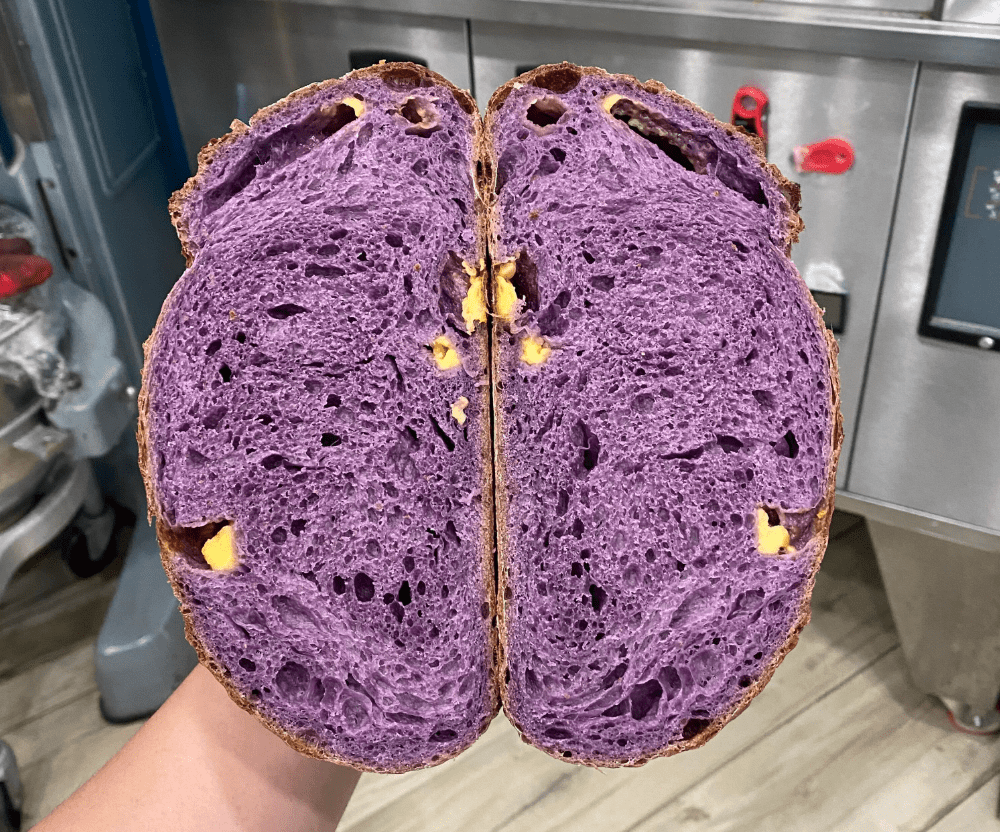 Home also meant flavor. For Green, it’s ube: the purple yam her father loved so much he requested it every year in chiffon cakes and ice cream speckled with macapuno. “As a Filipino and the child of an ube lover, there’s no doubt that I will represent this ingredient in the best way I can,” she says. Today, she folds it into cookies, pies, croissants, even sourdough. She experiments, too, with soy sauce in savory pastries like Roast Pork Buns and Chicken Adobo Pandesal, a nod to the flavors of her childhood.