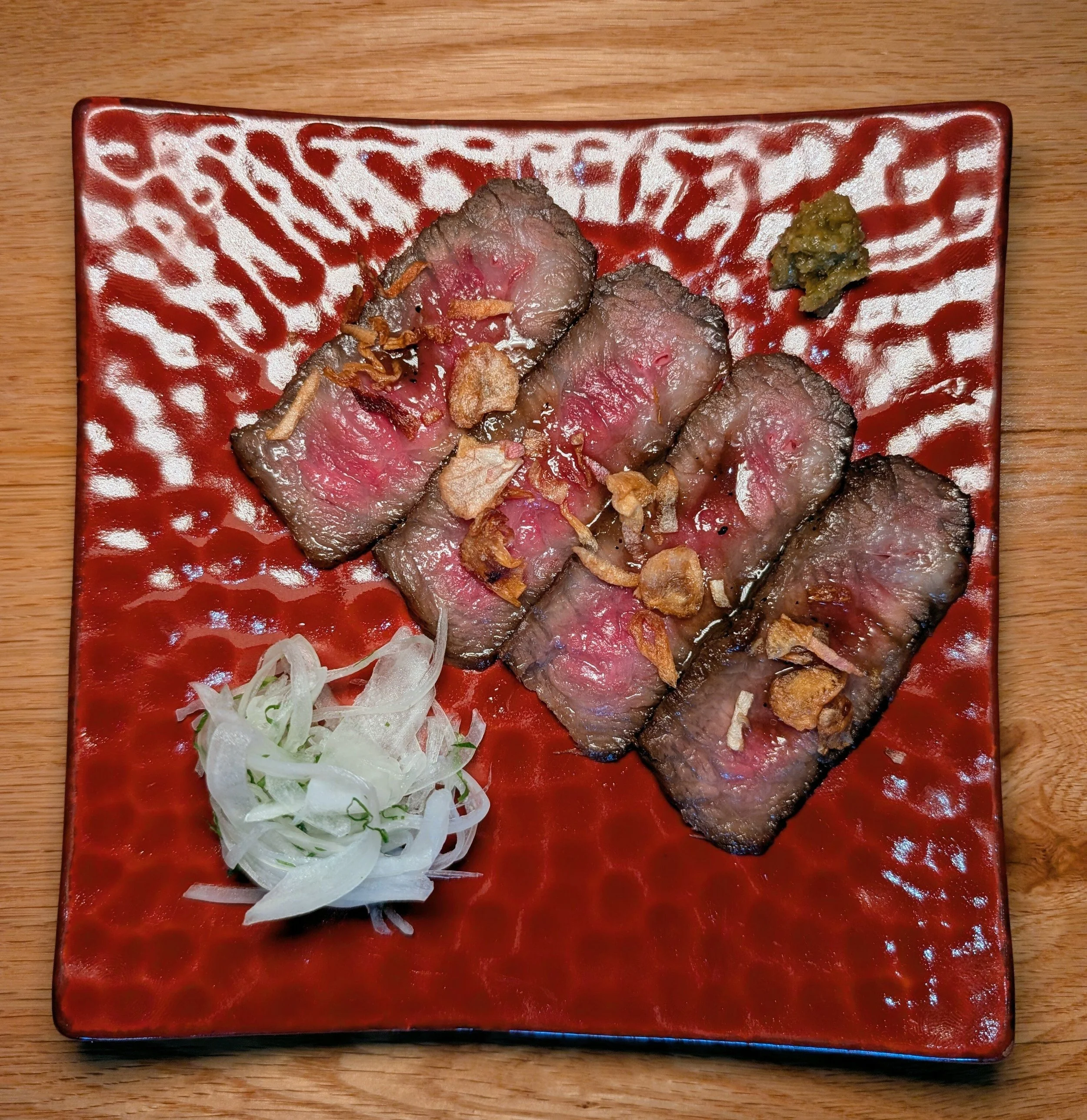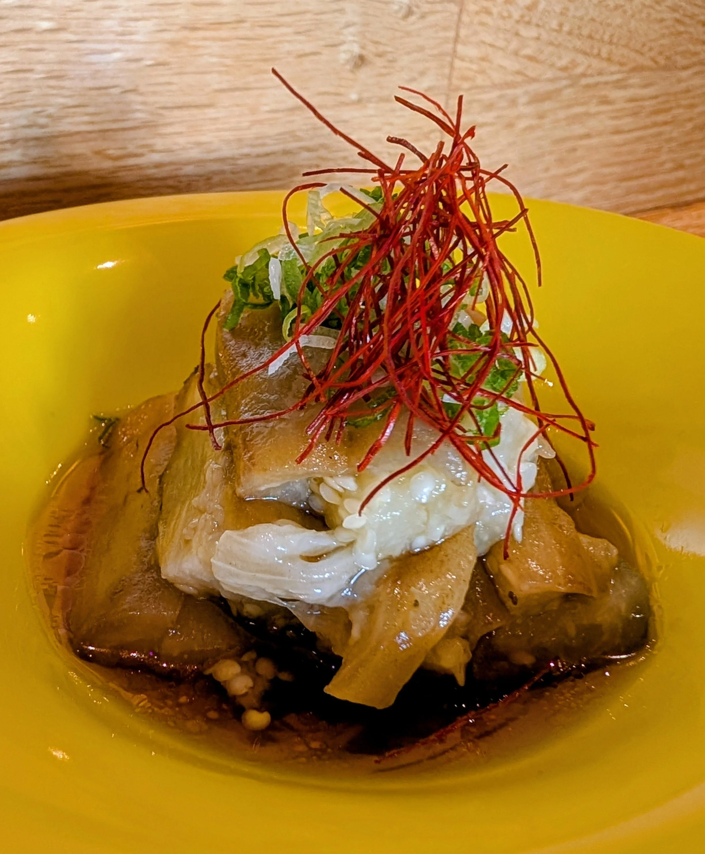 The first thing that landed in front of me was smoked, marinated eggplant, its flesh silky enough that it almost slid off the chopsticks. Then came wagyu filet, sliced thin and so tender I had to look down and make sure I hadn’t just imagined it. The miso cod was charred on the edges, the kind of sweet-umami balance that makes you forget there’s any such thing as chicken or pork.