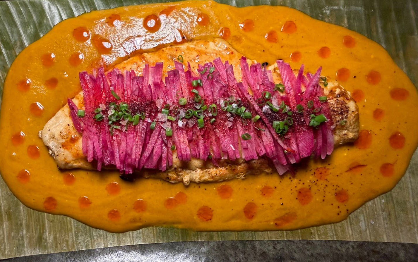 My snapper arrived with a cousin of the ceviche’s sauce—still peanut and coconut, but pushed in a different direction with turmeric and sumac. The side of ginger rice came studded with sweet plantain chunks, which did the job that great sides always do: it made sure nothing on the plate went to waste, especially not that sauce. Every forkful felt engineered to keep the flavors in balance, and to keep the table chasing the last bite.