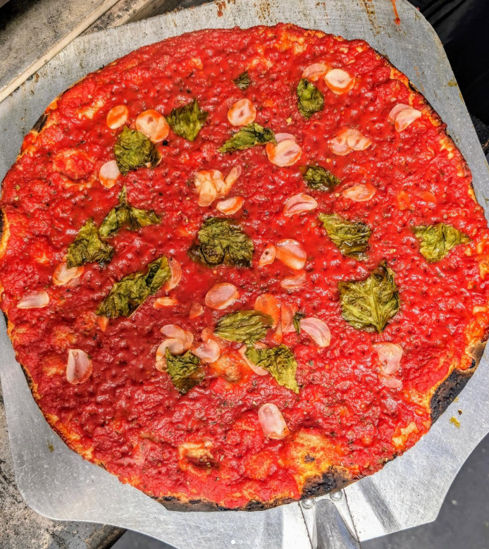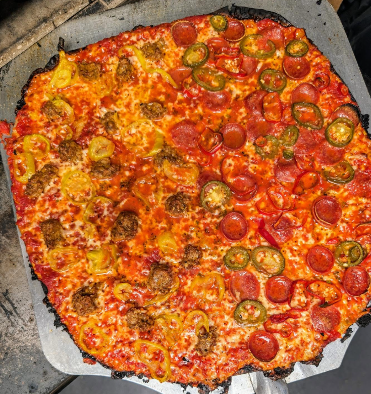 The signature pies remain: the Demon Pig Boy, a spicy pepperoni bomb laced with pickled hot peppers; the Vodka Bro, creamy and punchy without being cloying; and their sausage-and-pepper combo, which tastes like it belongs in a Midwestern tavern during football season. What makes them sing isn’t just the heat or the nostalgia, but the execution—cheese spread right to the edge, crust that stays crisp, and portions that vanish before you remember to share.