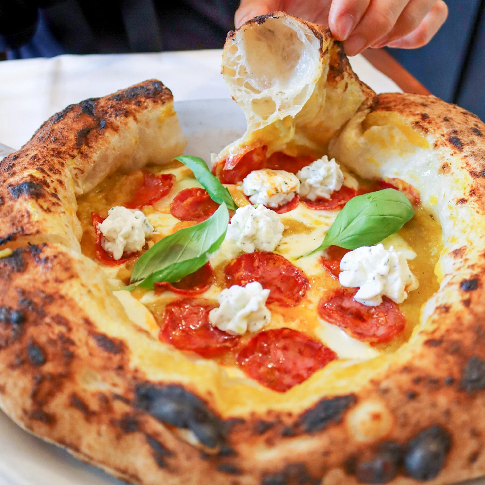 The menu leans on chef Luca Issa, who runs the original Piccolo Buco in Rome and partnered with McEnery to bring the concept stateside. His pizzas come in red, yellow, or white versions, each built on a dough that bakes into a lofty crust—airy, chewy, and more bread sculpture than flat disc. The supporting cast includes Mama Luca’s meatballs, cacio e pepe, truffle-stuffed cappellacci, and a dessert list that ends with tiramisu and gelato. Wine comes both from Italy and Cooper’s Hawk’s own labels, keeping the parent brand front and center.