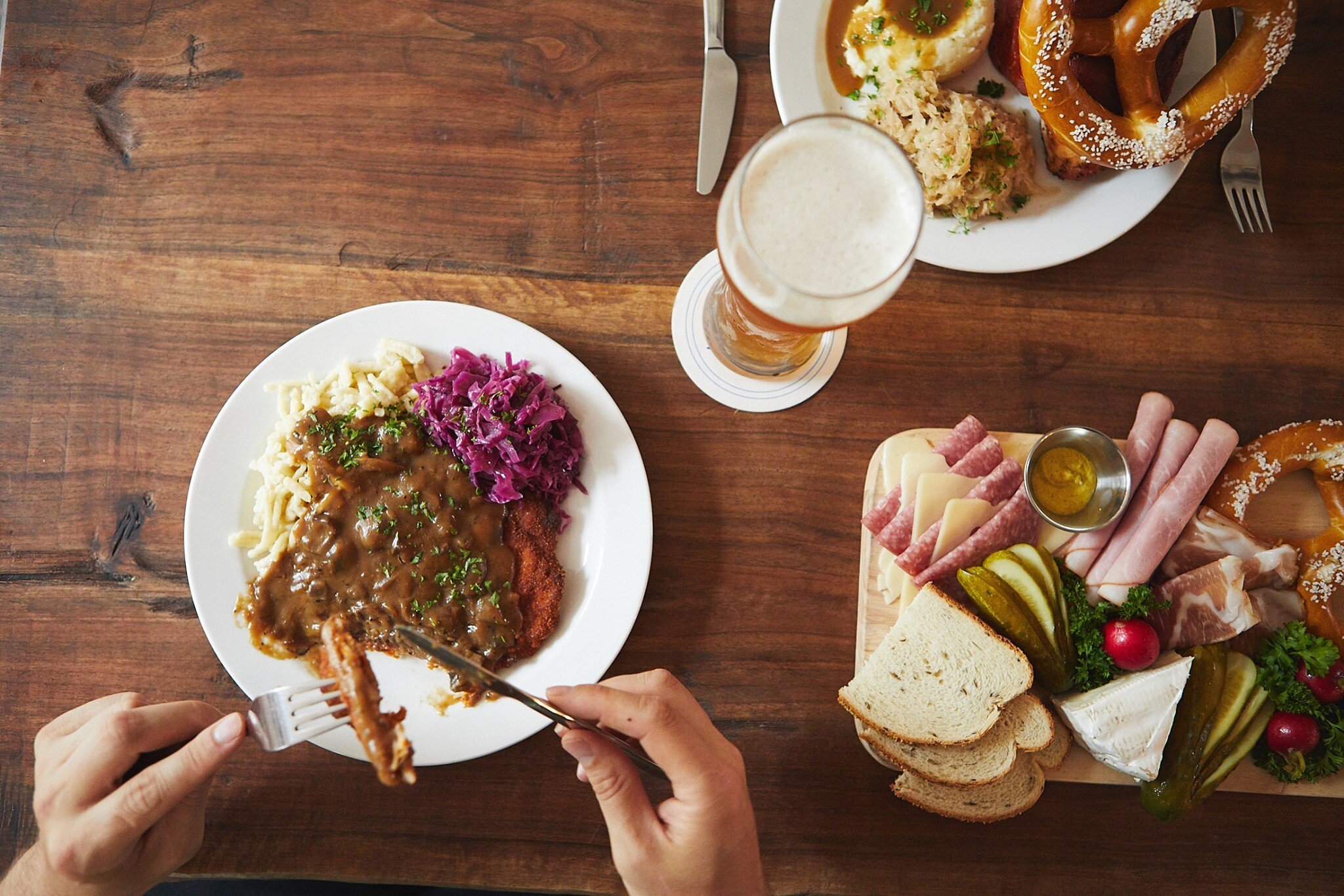 Prost has traded its shipping-container digs at Revolutsia for a two-story brick space downtown. The menu is still all in on the classics: Flammkuchen on a crackly thin crust, sauerkraut balls, and the Jägerschnitzel, a breaded pork cutlet under a proper cloak of creamy mushroom gravy with spätzle and warm red cabbage. On a busy night, the stein-lined walls, upstairs dining room, and big gated patio out back make it feel less like dinner out and more like you accidentally dropped into someone’s Oktoberfest plans.