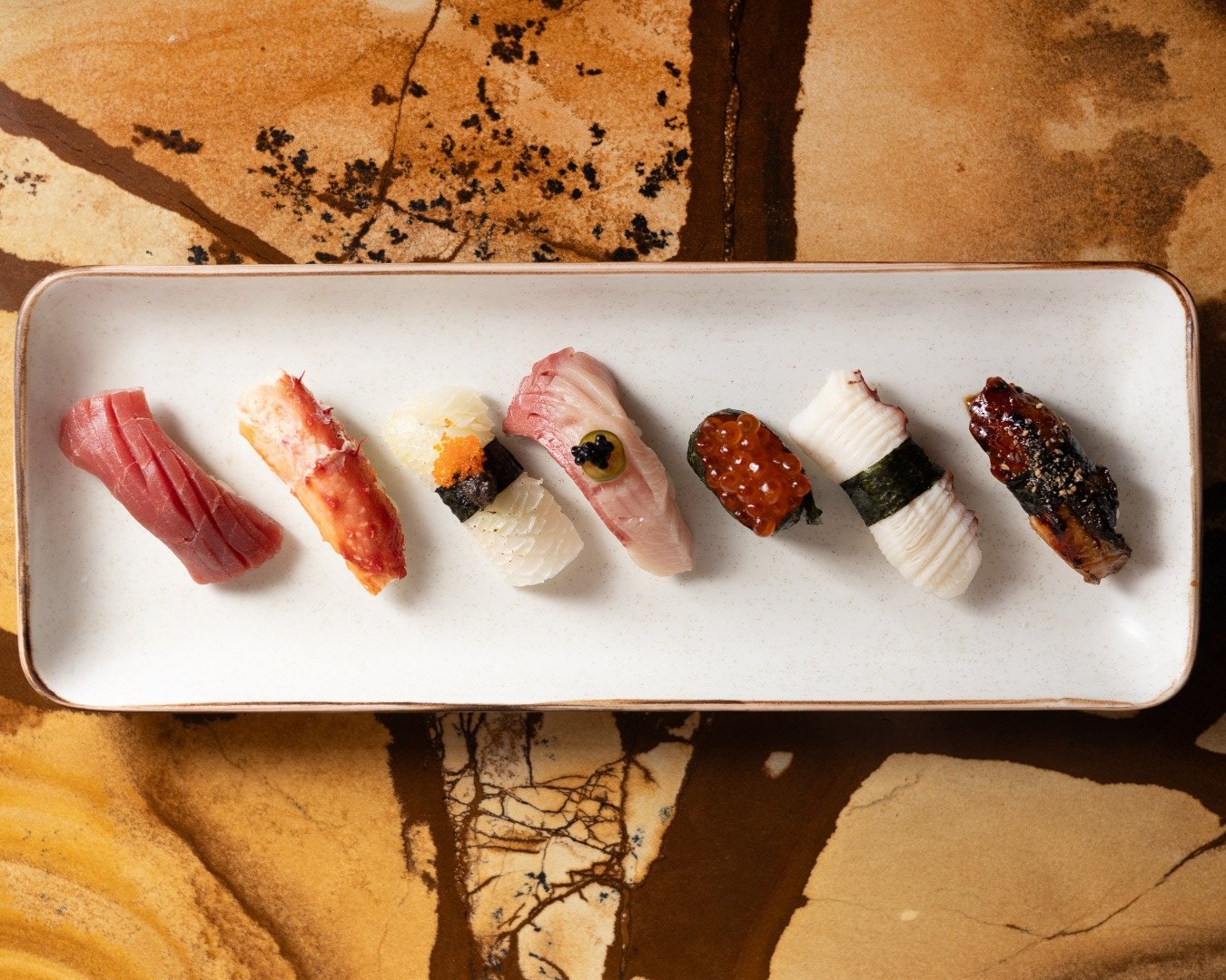 The menu, from former Beaker & Gray chef Brian Nasajon, is rooted in traditional Japanese technique but clearly filtered through a modern, global lens. The dishes are strongest in the raw and cold preparations. The nigiri arrives dressed—akami, salmon, madai, hamachi, kanpachi—each piece clean, balanced, and thoughtfully composed. No unnecessary theatrics, just precise execution.