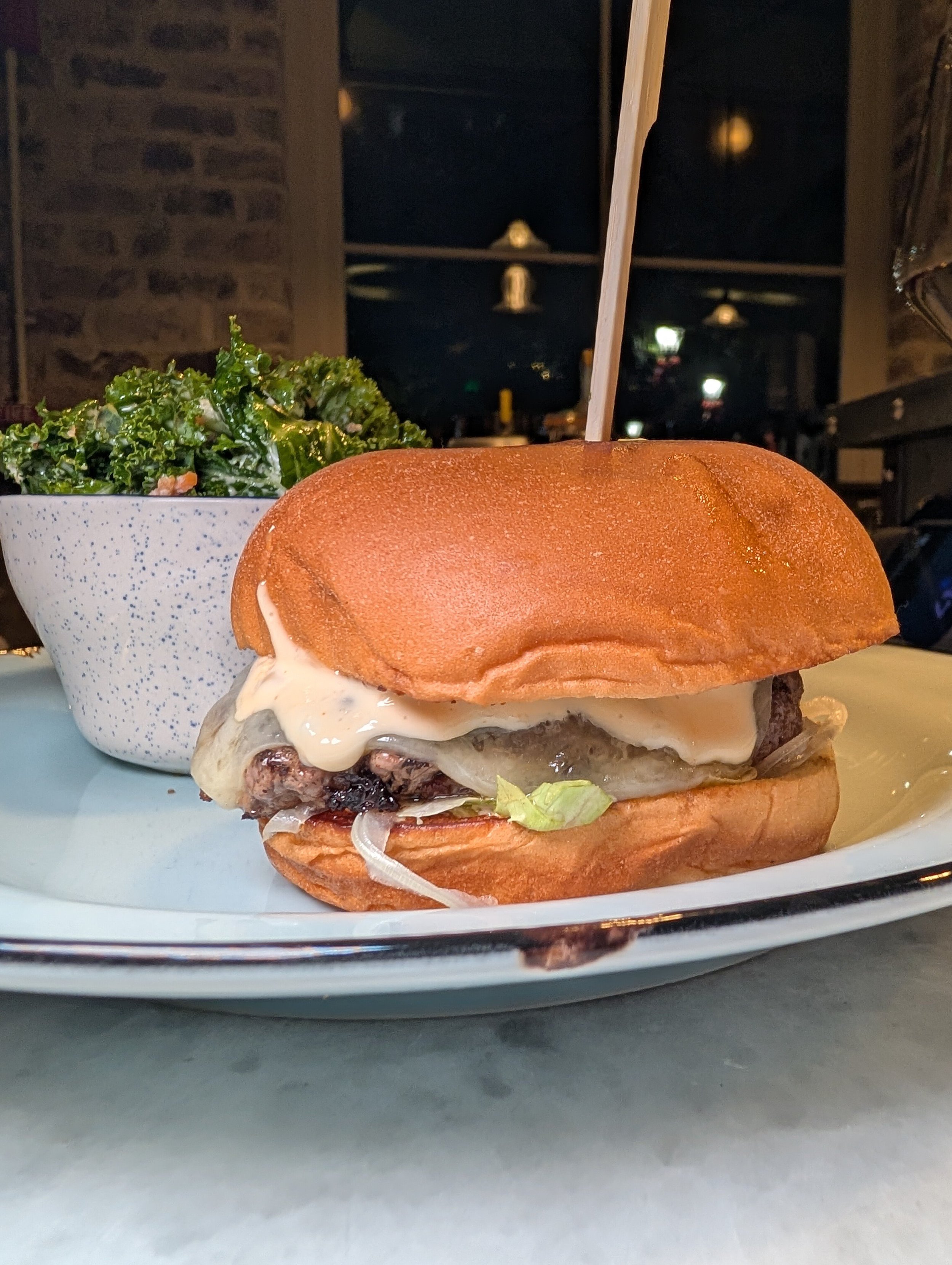 The burger nearly sticks the landing. The patty has plenty of flavor; the bun is buttered and toasted on all sides in that deeply satisfying, we-mean-it way. The only misstep is the heavy hand with the special sauce, which tends to take over a bite. It is the kind of flaw you forgive when you are halfway through and still going.