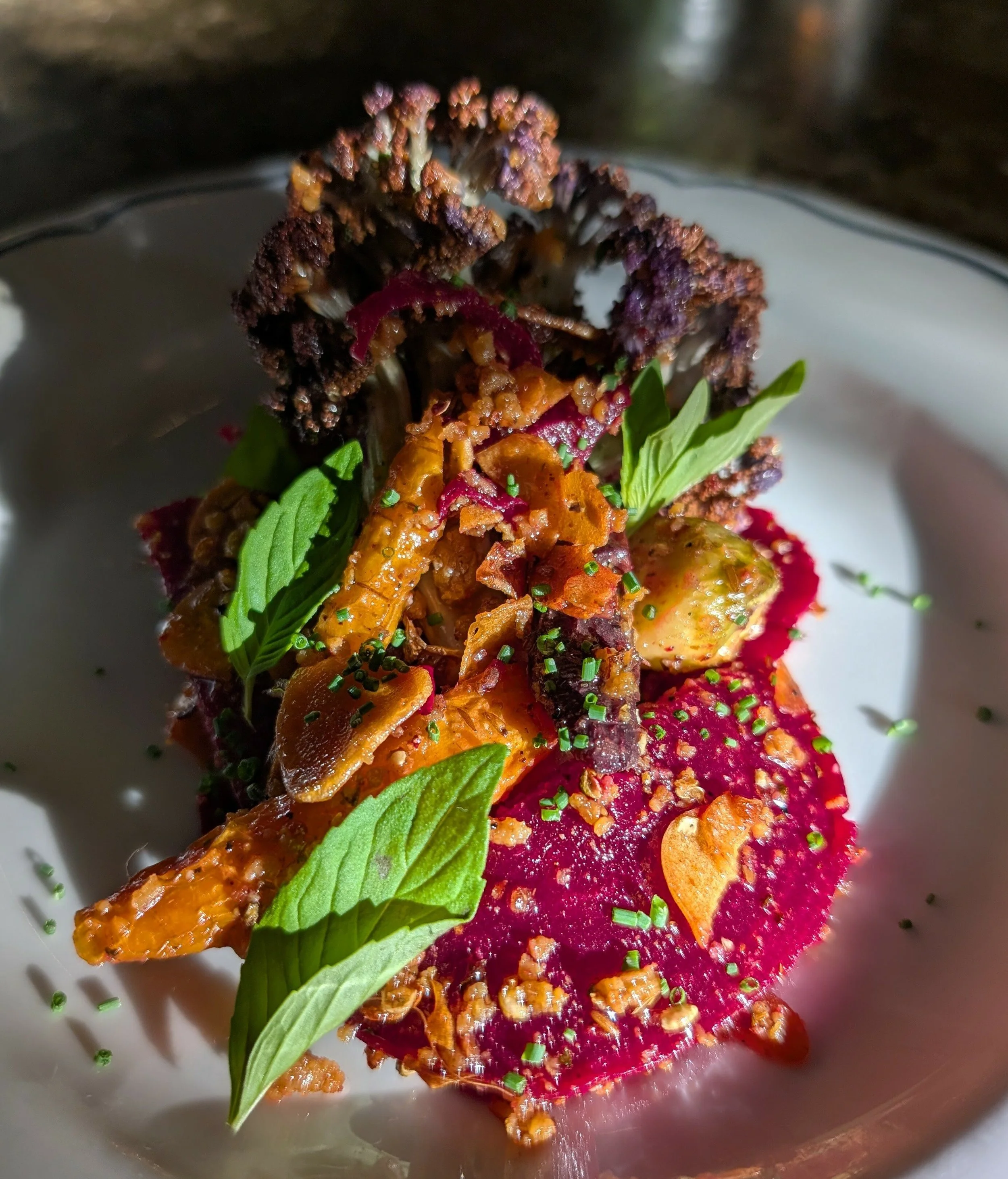 Crusco is the creation of four Asheville industry veterans: Allen Clark, Alex Harris, Kat Kearney, and Lauren Macellaro. The team built the restaurant on Depot Street with a farm-to-table ethos and a focus on creativity over fuss. It’s the kind of collaboration that feels very Asheville—ambitious, communal, and quietly confident. The menu reads like a love letter to farm-to-table Asheville. From what we ordered that night, the dishes still need editing, with some hard misses and some shining moments that hint of what’s possible here.