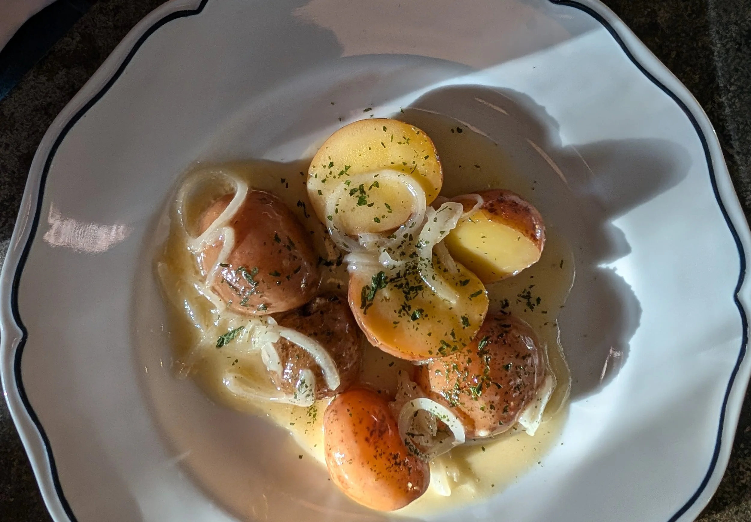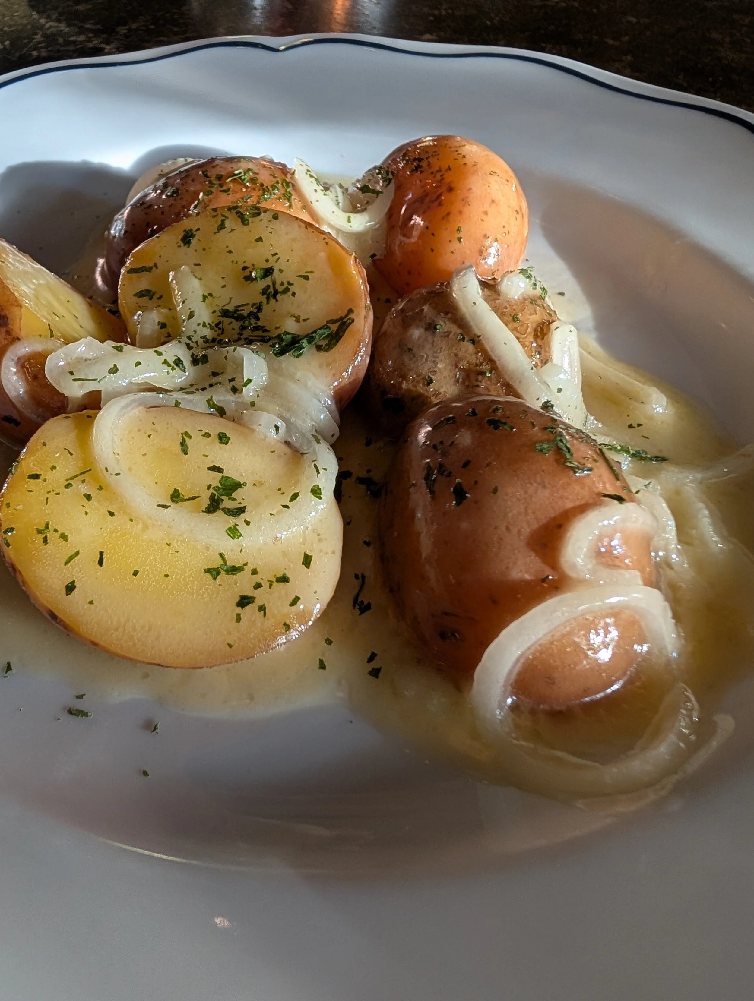 Then came redemption. The roasted beets and broccoli hit every mark, tangy and crisp in all the right ways, and the potatoes—swimming in a silky emulsified butter sauce with onions—were the sort of unassuming triumph you wish every kitchen could stumble on. (This dish was proof of what Pete Wells wrote about in the Times recently: potatoes really can be the star of a dish. )