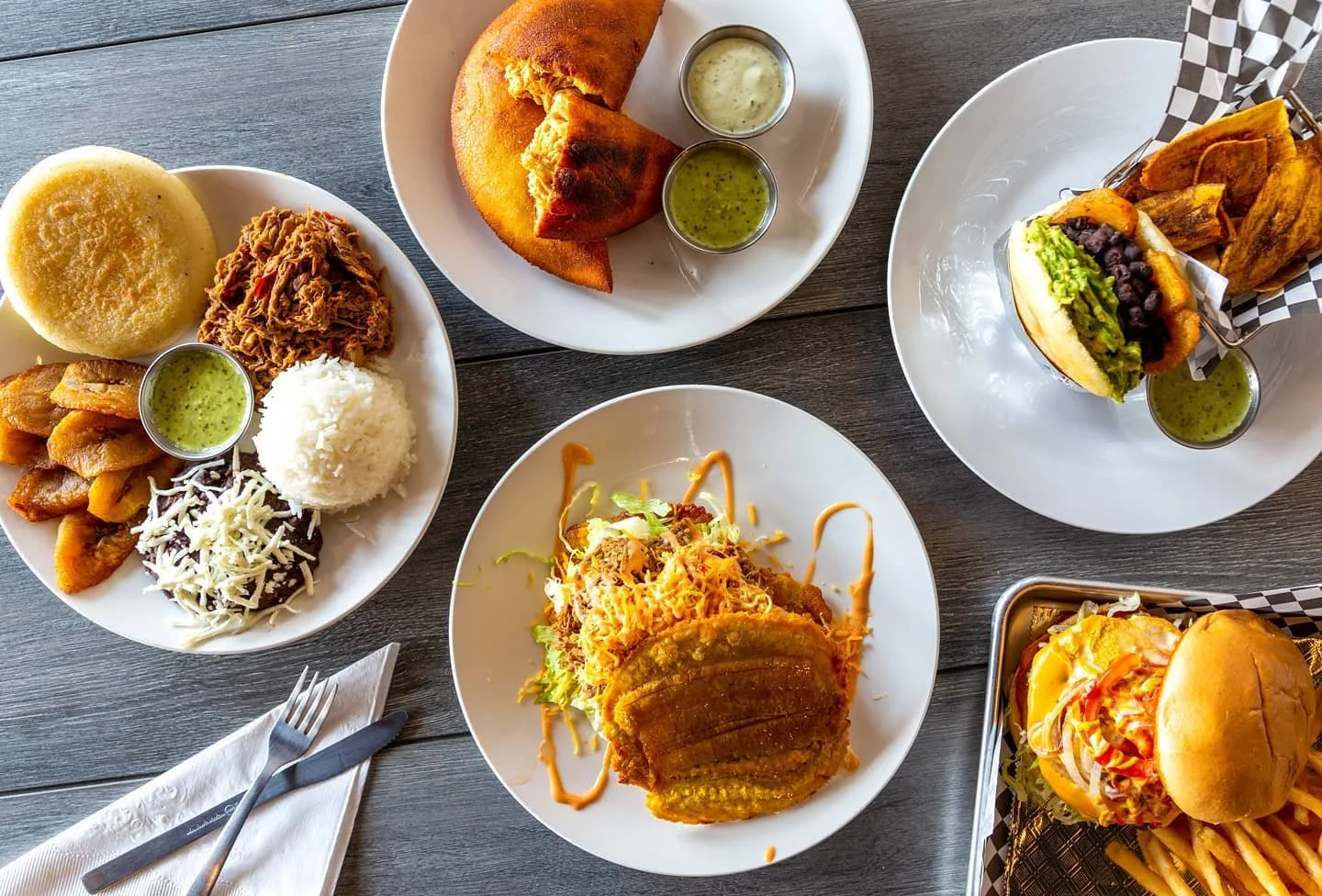 Que Chevere graduated from a Venezuelan food truck to a brick-and-mortar on Main Street, but it still feels like someone parked a party in the middle of downtown. Husband-and-wife team Orvid Cutler and Maria Fernanda send out tequeños, loaded arepas, and pabellón criollo plates with shredded beef, black beans, rice, and sweet plantains, plus patacón sandwiches built on fried plantains and corn-sweet cachapas. There is a small bar for rum-leaning cocktails, and if you catch the truck at a festival, the arepas taste just as good standing up in a parking lot.