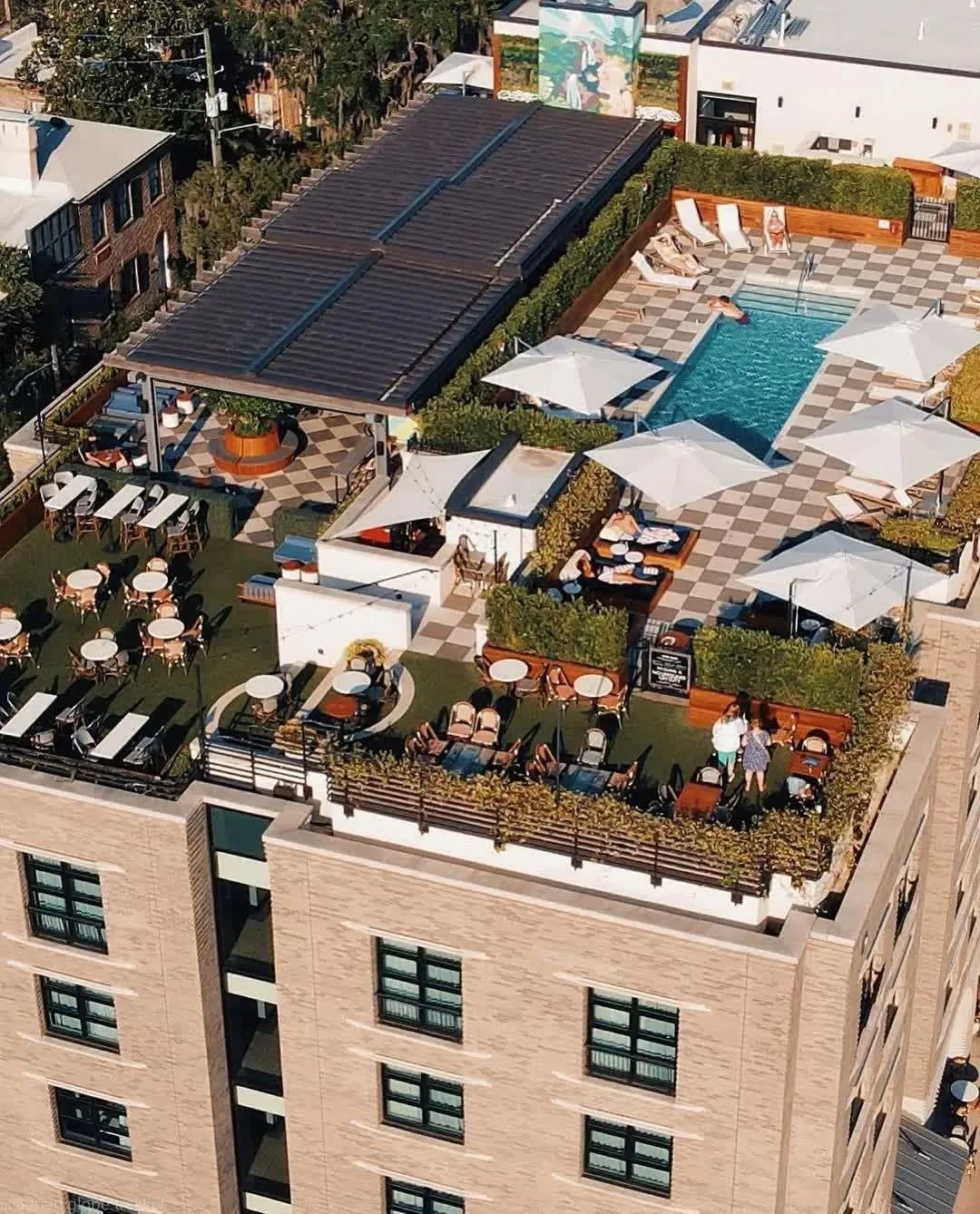 Savannah’s sleekest stay is part of Marriott’s Luxury Collection, a design-forward retreat in the Historic District with rooms that feel modern without losing the city’s Southern ease. I come for the rooftop: a proper pool and Peregrin, the open-air bar with long views and a social scene that kicks in before sunset. Downstairs, Emporium Kitchen & Wine Market turns out a solid breakfast and an even better evening lineup, so you can make a night of it without ever leaving the block.